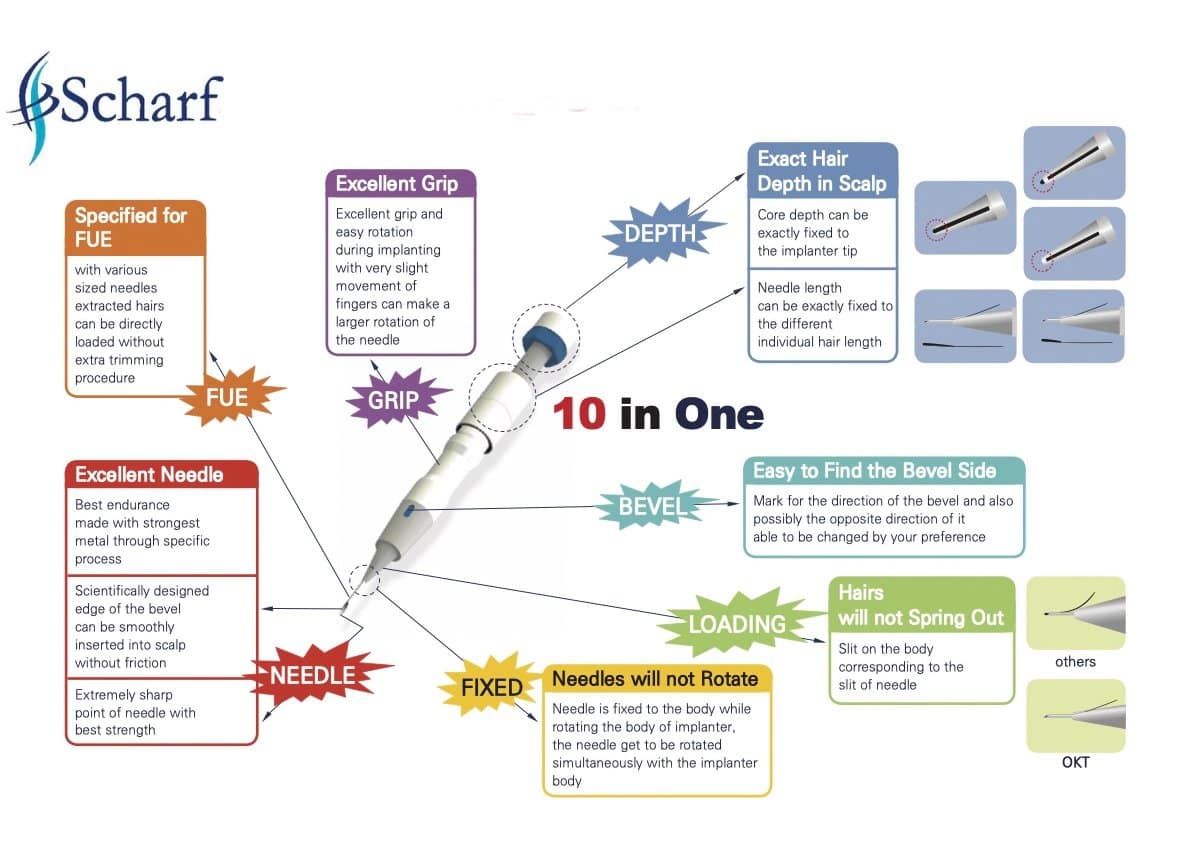 • FUE Specifies: Hairs can be directly loaded without extra trimming procedure